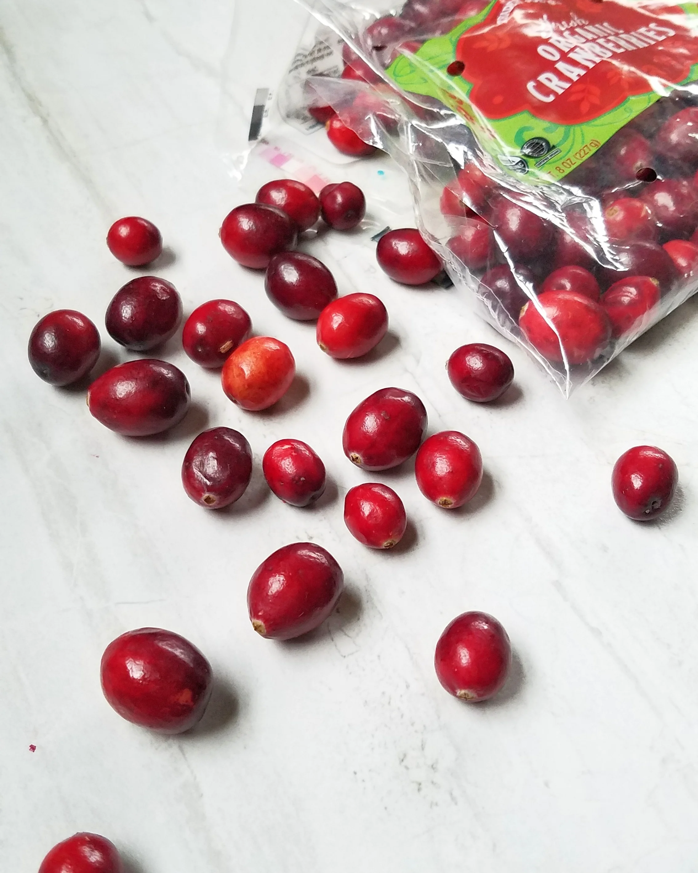 • ½ cup of fresh, organic cranberries, cut in half (discard any that are shriveled or soft)